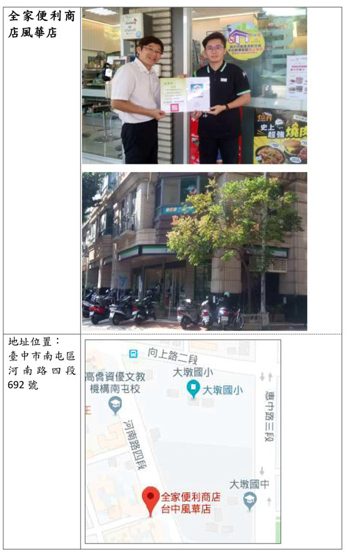 | 4 | 全家便利商店 風華店 臺中市南屯區河南路四段692號 |
