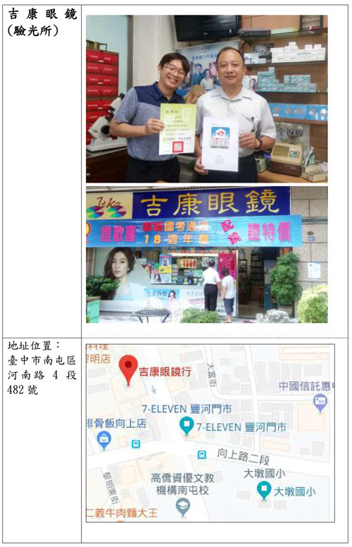 | 5 | 吉康眼鏡(驗光所) 臺中市南屯區河南路四段482號 |